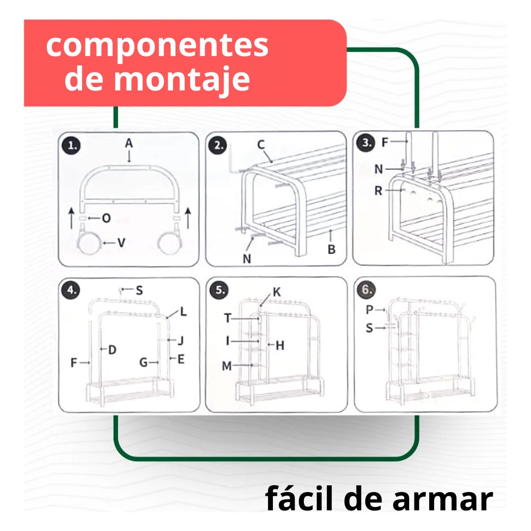 Zapatero Metálico Con Dos Barras Y Ruedas - Fácil montaje - ¡Precio Único Limitado!